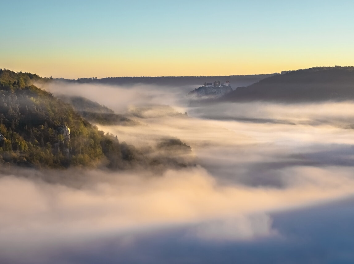 Hotel Schlossberg Wehingen is centrally located on the beautiful Heuberg upland plateau between Stuttgart, Zurich and the Black Forest. In an area of just 20 square kilometres, you'll find the highest elevations of the Swabian Alps in the so-called "Region of the 10 Thousanders". You're awaited by spectacular walking and cycling tracks with fantastic views, including – in the fairest weather – the farthest view from the highest alpine peak in Germany (Lemberg) all the way to Mont Blanc in France. Being part of the beautiful Donaubergland region, other highlights such as Obere Donau Nature Park and Hohenzollern Castle are just a stone's throw away.